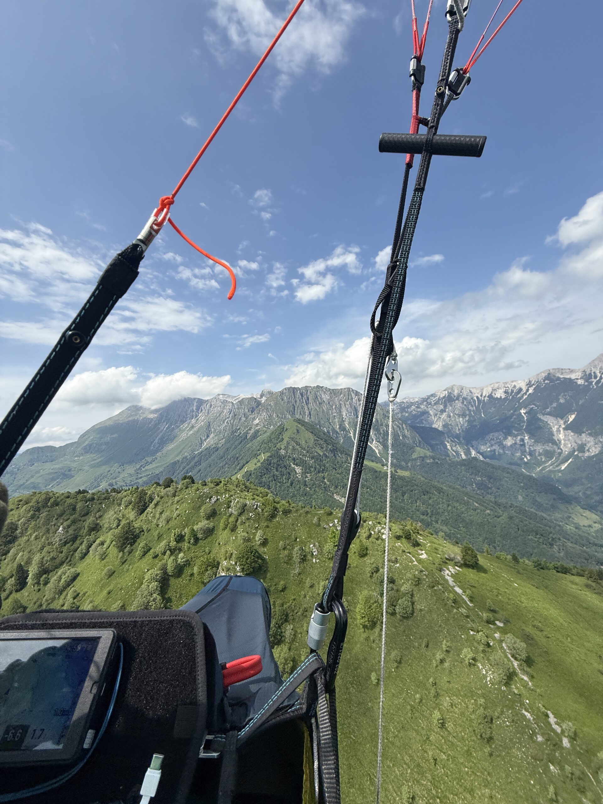Pilot visi pod krilom na vrvicah, ki so pritrjene na spodnjem delu krila. Vrvice so pritrjene po vsej površini krila, saj so velik dejavnik pri njegovi obliki. Spodaj so spete v dve točki levega in desnega dela krila posebej. Pilot na jadralnem padalu visi na trakovih (približno 70 cm dolžine), na vrhu katerih so pritrjene vrvice, ki potujejo naprej do krila na jadralnem padalu.